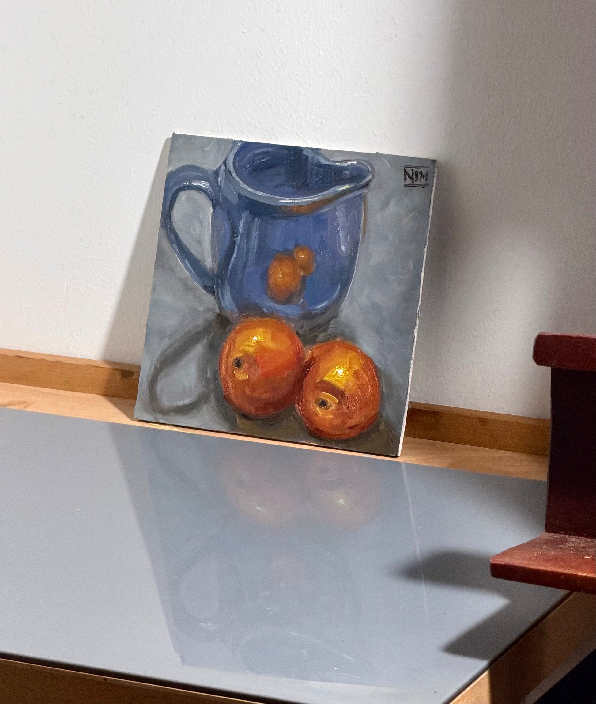 Blue Jug & Oranges Original Oil Painting Artwork For Sale