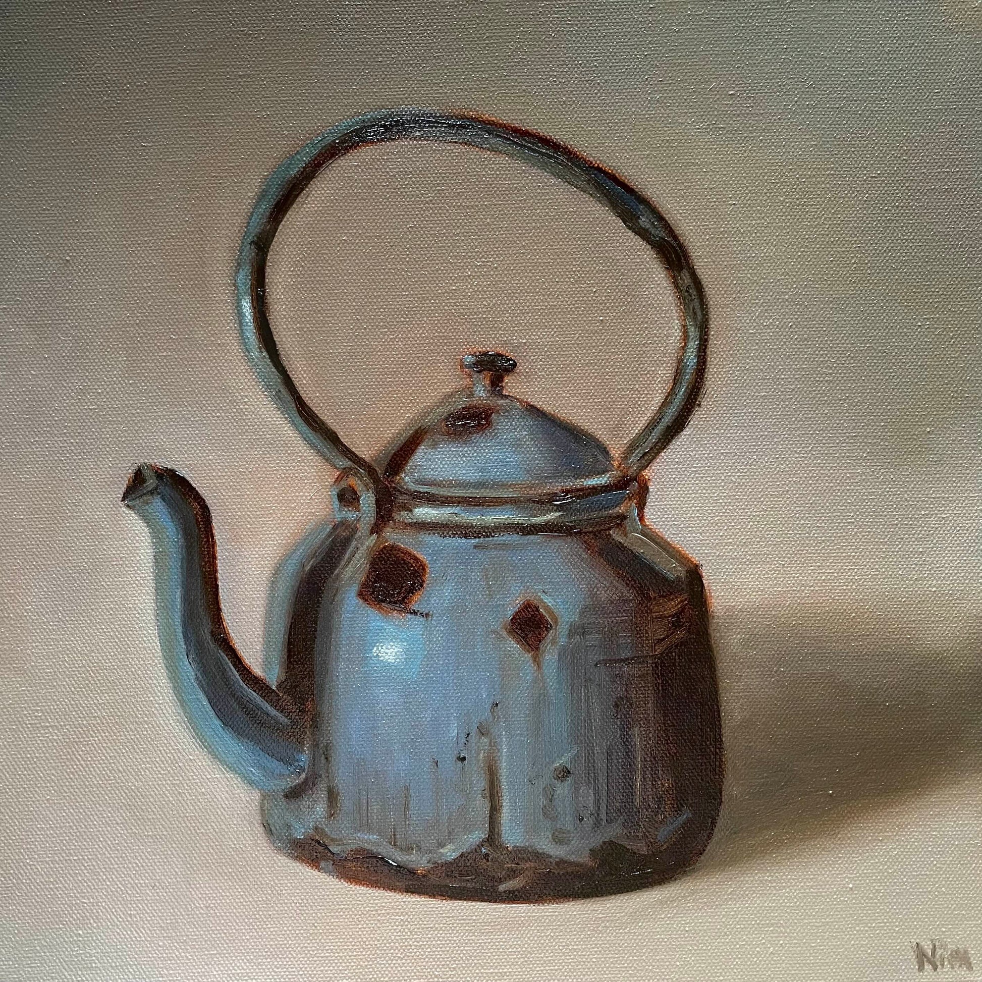 Rustic Blue Kettle Still Life Original Oil Painting Artwork For Sale