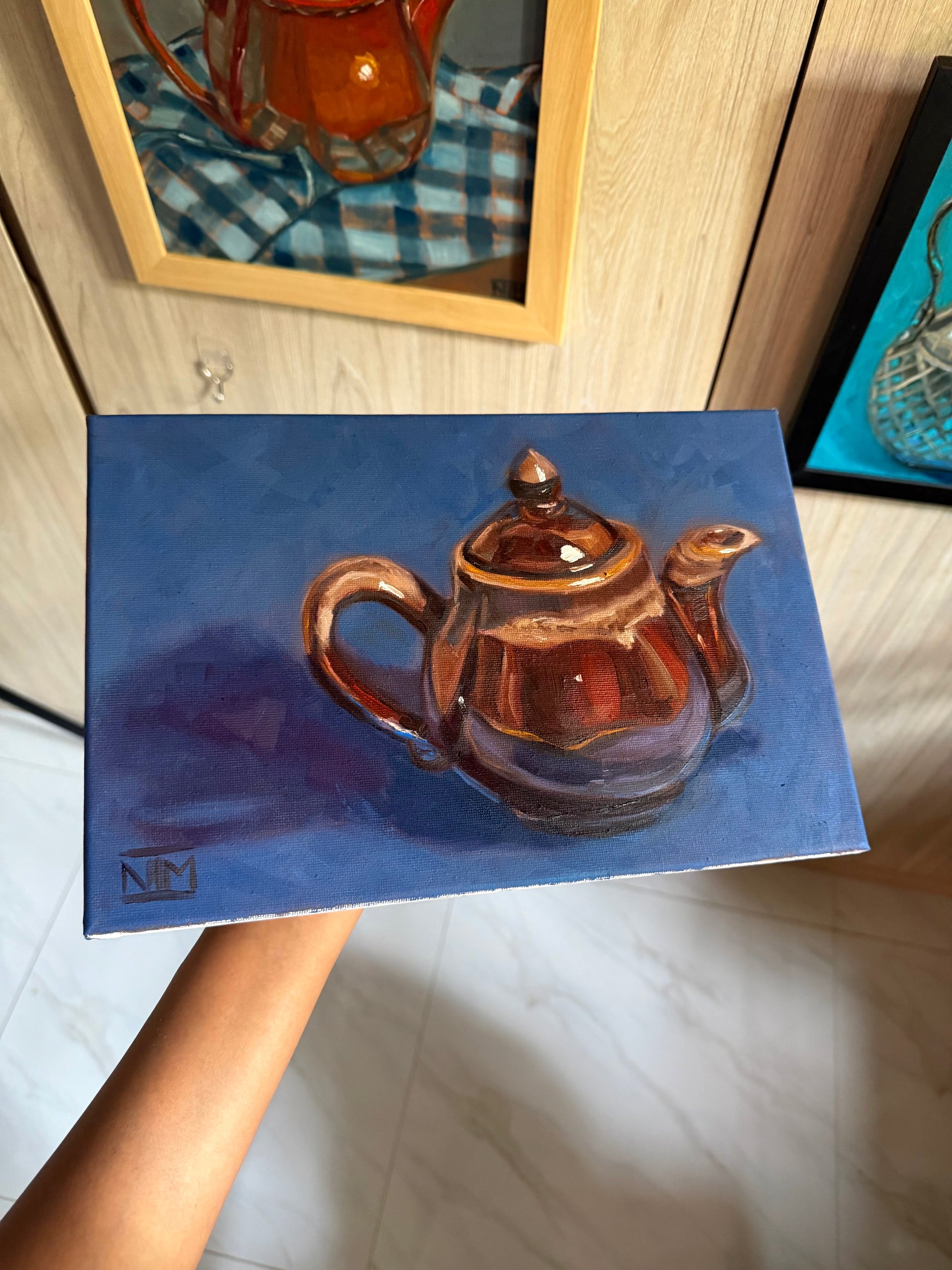 Brown Teapot Original Oil Painting Artwork For Sale