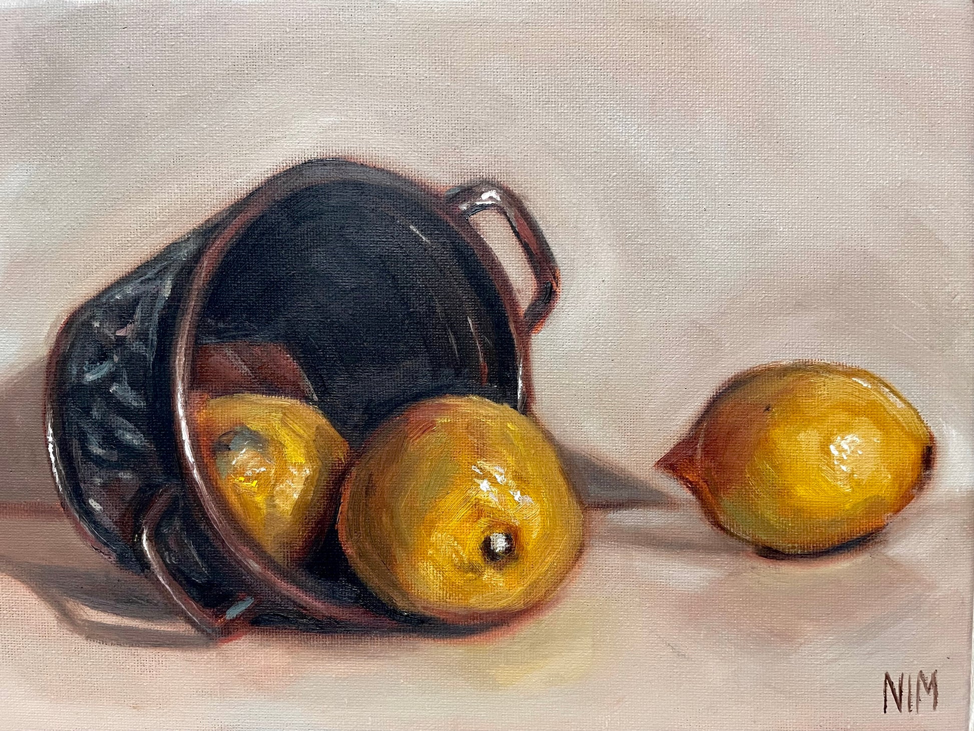 Bucket and Three Lemons Still Life Original Oil Painting Artwork For Sale