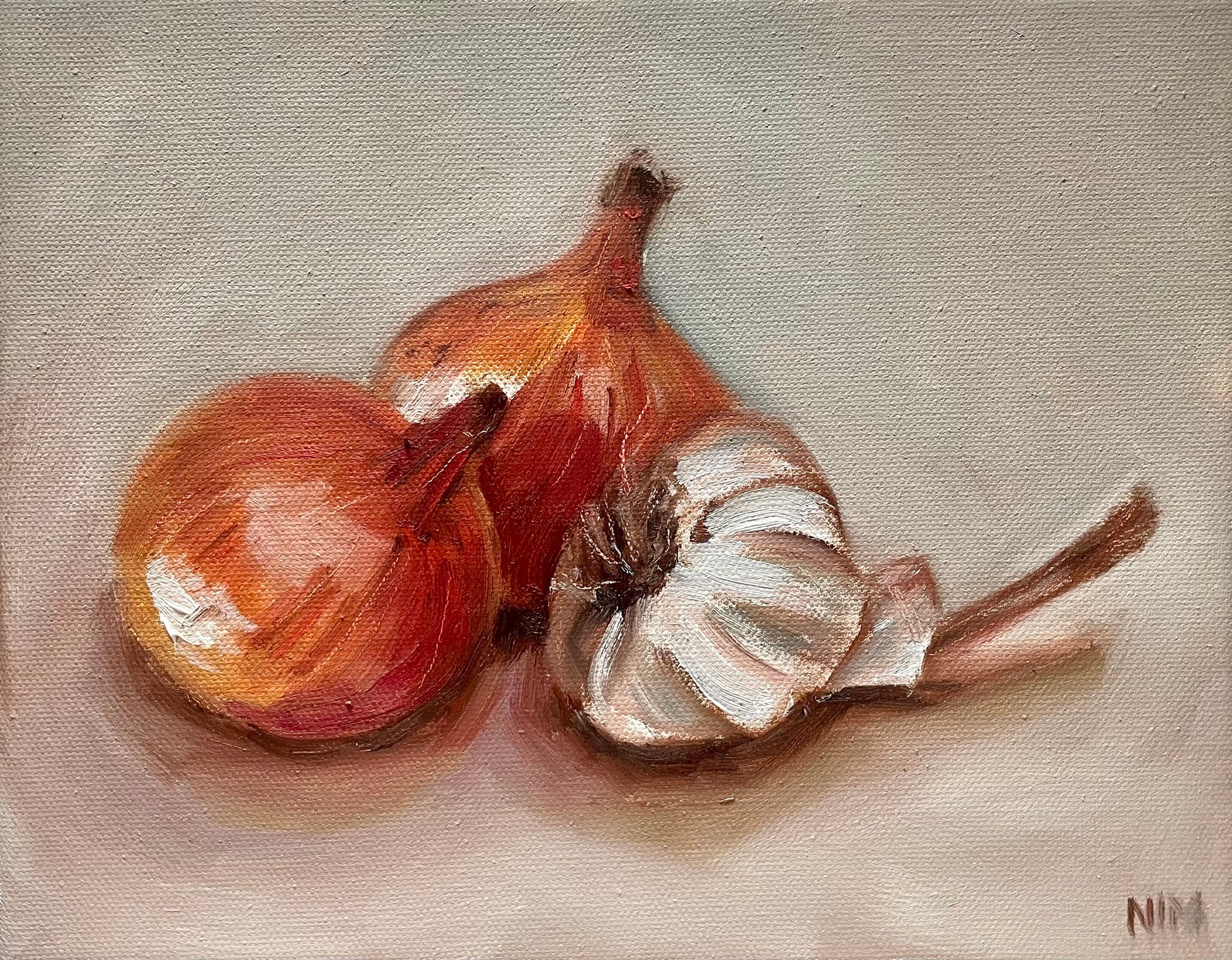 Onions and Garlic Original Still Life Oil Painting Artwork For Sale