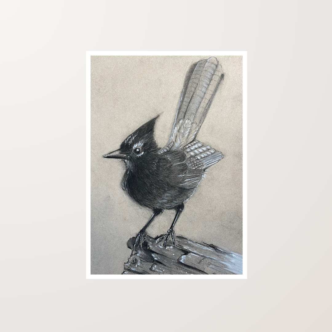 Stellers Jay Bird Ink Pen Artwork Art Print For Sale