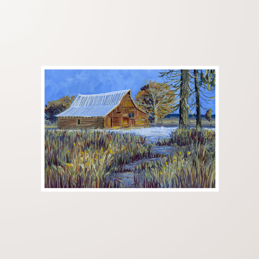 Tranquility Landscape Gouache Painting Artwork Art Print For Sale